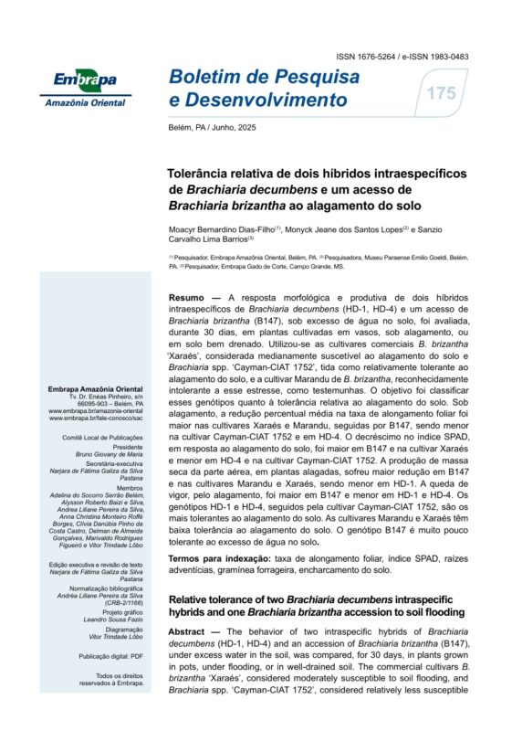 (1) Pesquisador, Embrapa Amazônia Oriental, Belém, PA. (2) Pesquisadora, Museu Paraense Emilio Goeldi, Belém,